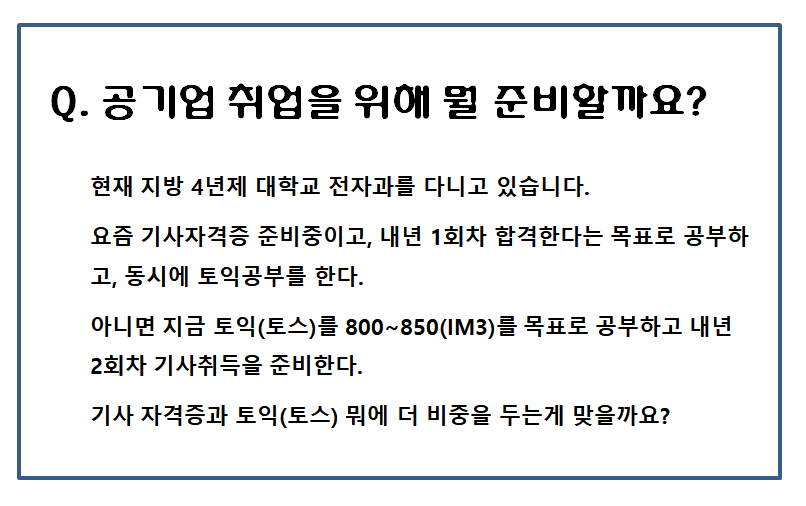 오늘은 공기업 취업을 준비하는 분의 사연입니다. 사연을 바탕으로 답변 내용을 공유합니다.
